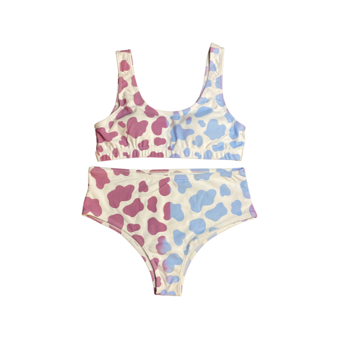 Kids Color Changing Cow Print Two Piece Swimsuit